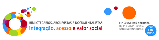 Chamamos a atenção para algumas datas importantes relacionadas com o 11º Congresso Nacional de Bibliotecários, Arquivistas e Documentalistas, que se realizará de 18 a 20 de outubro de 2012 no edifício da Fundação Calouste Gulbenkian, em Lisboa: