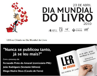 - “Nunca se publicou tanto, já se leu mais?” Conversa no Chiado, às 18,30h, com a participação do Comissário do PNL, Fernando Pinto do Amaral, de dois editores e com a moderação de Anabela Mota Ribeiro.