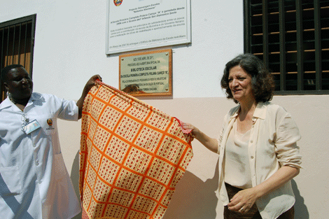 A coordenadora da Rede de Bibliotecas Escolares (RBE) do Ministério da Educação de Portugal, Teresa Calçada, procedeu, na passada sexta-feira (15 de Abril), à abertura oficial da biblioteca escolar da Escola Primária Completa da Polana-Caniço “A”, na sequência da intervenção directa no terreno da EPM-CELP. Ainda hoje, Teresa Calçada participará também na inauguração de equipamento escolar idêntico na Escola Profissional São Francisco de Assis, em Mumeno, Marracuene, na companhia da vice-ministra da Educação de Moçambique, Leda Hugo.