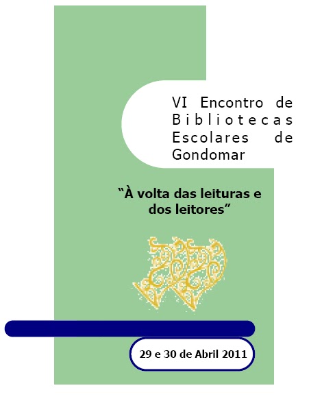 Nos dias 29 e 30 de Abril decorrerá, no Auditório da Biblioteca Municipal de Gondomar, o VI Encontro de Bibliotecas Escolares subordinado ao tema À volta das leituras e dos leitores, uma organização conjunta da Câmara e Biblioteca Municipal de Gondomar, Centro de Formação Júlio de Resende, Rede Concelhia de Bibliotecas Escolares e respectivo Grupo de Trabalho (ES de Gondomar, AVE Baguim do Monte e EBS de À Beira Douro).