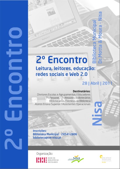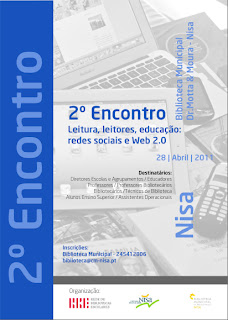 Na continuidade do encontro realizado em Abril de 2010, a Câmara e a Biblioteca Municipal/ SABE de Nisa e os serviços de coordenação interconcelhia da Rede de Bibliotecas Escolares, organizam o 2º Encontro Leitura, leitores, educação: redes sociais e Web2.0 , que terá lugar no próximo dia 28 Abril, na Biblioteca Municipal de Nisa.