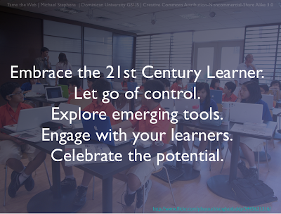 A Web é um espaço social e aberto que mudou tudo - no trabalho, em casa e na escola. O que torna imprescindível a existência, nas bibliotecas escolares, de infra-estruturas informáticas e telemáticas adequadas, bem como de professores bibliotecários qualificados para saber aproveitar os novos recursos. Eis um artigo de Michael Stephens sobre esta temática: The evolving Web is an open and social place. The Web has changed everything. Its impact on every facet of our lives — home, work and school — would be difficult to measure but the ‘always on, always available’ Internet is certainly a game changer. Can you recall the first time you realised that the Internet would change your job? Your school? Your students? (...)