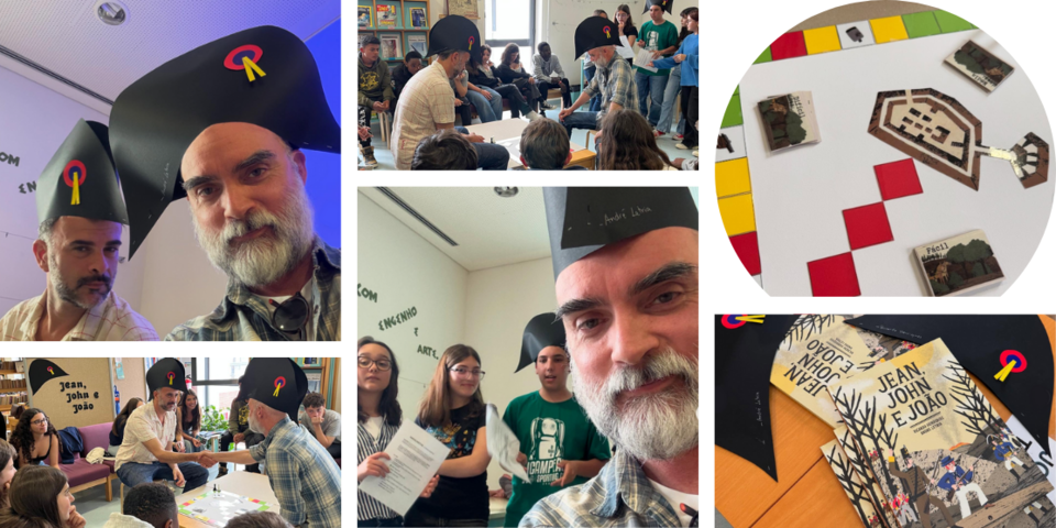Na Escola Básica de Mafra, os alunos deixaram de ser apenas leitores para se tornarem protagonistas de uma experiência memorável com Ricardo Henriques e André Letria, autores de Jean, John e João. Entre entrevistas criativas, diários de guerra, jogos inventados e bicórnios à Napoleão, reinventaram o encontro com os autores e celebraram a leitura com imaginação, rigor e afeto. Um exemplo inspirador de aprendizagem ativa, onde a literatura se transforma em palco para o pensamento, a criação e a ação.
