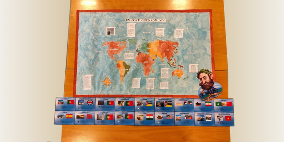 Os alunos recriaram as rotas camonianas num planisfério ilustrado, escreveram textos evocativos e apresentaram-nos em jogral, usando adereços simbólicos inspirados no poeta. Um projeto que conjugou saberes, arte e identidade, assinalando o início das comemorações dos 500 anos de Camões no agrupamento.