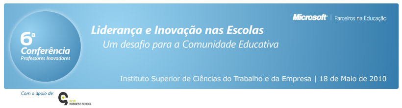 É já a 18 de Maio, no Auditório do ISCTE, que terá lugar a 6ª Conferência Professores Inovadores promovida pela Microsoft, este ano dedicada ao tema Liderança e Inovação nas Escolas – Um desafio para a Comunidade Educativa.