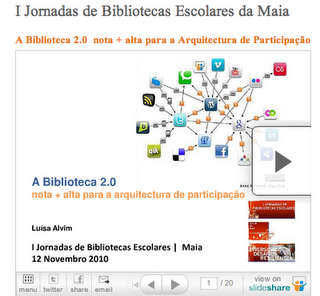 Nas I Jornadas de Bibliotecas Escolares da Maia, que decorreram no dia 12 de novembro, Luísa Alvim apresentou esta comunicação cuja leitura recomendamos vivamente.
