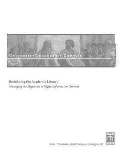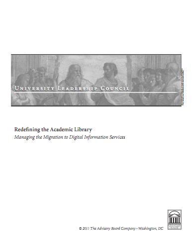 O University Leadership Council, instituição americana que fornece aos reitores das universidades consultadoria especializada, estratégias inovadoras e exemplos de práticas testadas que podem beneficiar todas as universidades que enfrentam os mesmos problemas, publicou um relatório sobre uma questão crucial para as bibliotecas: a migração para serviços de informação digital. Embora centrado nas bibliotecas universitárias, o estudo Redefining the Academic Library: Managing the Migration to Digital Information Services, muito objetivo, sintético, ajuda a perceber as tendências futuras, a maior ou menor distância das bibliotecas atuais face ao modelo digital e apresenta, ainda, ideias e práticas interessantes.