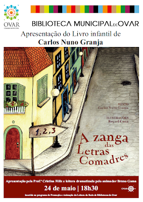 Inserido no programa de Promoção e Animação da Leitura da Rede de Bibliotecas de Ovar decorrerá mais logo, às 18h30, na Biblioteca Municipal do concelho, a apresentação da obra A Zanga das Letras Comadres, da autoria de Carlos Nuno Granja e ilustrações de Raquel Costa. A apresentação será feita pela prof. Cristina Félix e a leitura dramatizada pelo animador Bruno Gama.