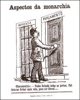 Outro exemplo de humor, dos muitos que expressaram a disputa entre republicanos e monárquicos, este a propósito da publicação da lei de imprensa de 11 de Abril de 1907.