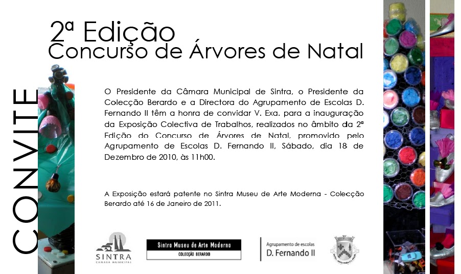 Sex | 17.12.10 Árvores de Natal promovidas pelo Agrupamento de Escolas D. Fernando, em exposição no CCB _____________________________________________________________________________________________________________________ Este trabalho está licenciado sob licença: CC BY-NC-SA 4.0 Tweetar Tags:difusão da informação link comentar favorito