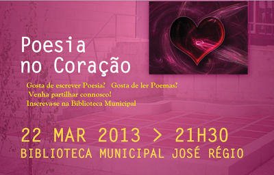 Ter | 19.03.13 Biblioteca Municipal José Régio (Vila do Conde) com Poesia no Coração _____________________________________________________________________________________________________________________ Este trabalho está licenciado sob licença: CC BY-NC-SA 4.0 Tweetar Tags:eventospoesia link comentar favorito