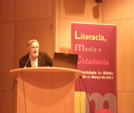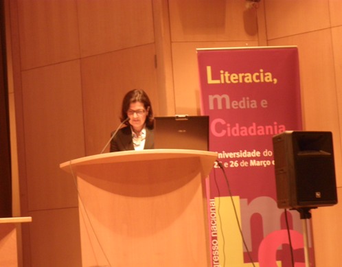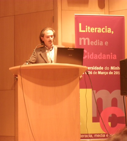 Imagens do 2º dia do congresso Literacia, Media e Cidadania, realizado a 25 e 26 de Março no Campus de Gualtar da Universidade do Minho. Por lá passaram especialistas nacionais e espanhóis e representantes de órgãos ligados aos meios de comunicação e à educação, que apresentaram e debateram diferentes conceitos, assim como práticas e políticas nos domínios da educação para os média e para a cidadania. Educação para os média, educação para a comunicação, literacia mediática, alfabetização mediática, cidadania, cidadania activa, inclusão, foram algumas das designações usadas. Não para acentuar as suas particularidades de enfoque mas, justamente, para dar relevo às noções e orientações que são comuns às diferentes abordagens: a constatação de que vivemos imersos num ecossistema mediático - os médias são o ar que respiramos - que engloba actualmente toda a parafrenália de tecnologias digitais; a perspectiva de que uma pedagogia ou educação para os média tem de os encarar como dispositivos tecno-culturais e não meros veículos tecnológicos, desempenhando um papel central na socialização, formação da identidade e práticas dos cidadãos, muito especialmente nas gerações mais jovens; a ideia de que a literacia mediática, ou seja, as competências, os conhecimentos e as atitudes que permitem um uso eficaz, seguro e crítico dos média é, hoje, uma condição essencial para a inclusão social e o exercício pleno da cidadania.