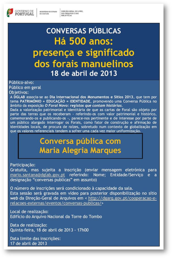 Ter | 16.04.13 Conversas Públicas na Torre do Tombo _____________________________________________________________________________________________________________________ Este trabalho está licenciado sob licença: CC BY-NC-SA 4.0 Tweetar Tags:museus link comentar favorito