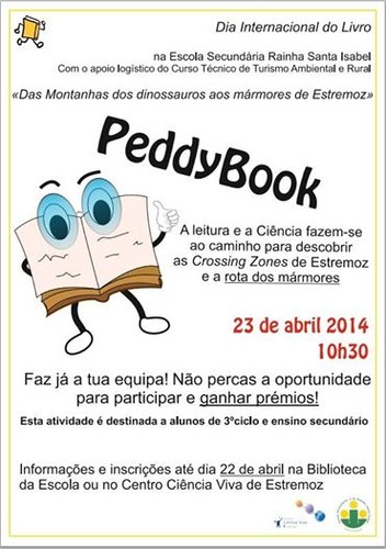 Na biblioteca da Escola Secundária Rainha Santa Isabel, em Estremoz, a atividade comemorativa do Dia Internacional do Livro e dos Direitos de Autor é um PeddyBook, que já vai na 2ª edição e, este ano, é dedicado à temática “Das montanhas dos dinossauros aos mármores de Estremoz”.