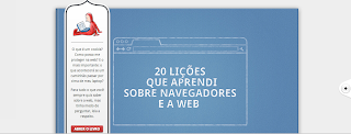 Ter | 28.06.11 E-book para jovens: "20 Lições que aprendi sobre navegadores e a web" A Google Chrome lançou um e-book gratuito dirigido aos mais jovens (e não só...) sobre como funcionam os browsers e a internet. São 20 lições muito claras, muito úteis. Clicar aqui para aceder ao livro que se apresenta numa versão em português. _____________________________________________________________________________________________________________________ Este trabalho está licenciado sob licença: CC BY-NC-SA 4.0 Tweetar Tags:literacia digitallivros digitais link comentar favorito