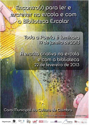 Os Encontro(s) para Ler e Escrever na Escola e com a Biblioteca Escolar são uma iniciativa integrada no plano de acção 2012-13 da Rede de Bibliotecas de Coimbra e dirigida aos Professores Bibliotecários deste concelho e dos concelhos limítrofes, da área de intervenção dos Centros de Formação de Associação de Escolas Nova Ágora e Minerva. Equivalem a um curso de formação de 15 horas, creditado e realizam-se em dois dias, 19 de Janeiro e 22 de fevereiro de 2013, conforme programa. Resultam de uma parceria das seguintes entidades: Câmara Municipal de Coimbra /Biblioteca Municipal , RBE/PNL, Editora Tropelias e Companhia e os Centros de Formação Nova Ágora e Minerva.