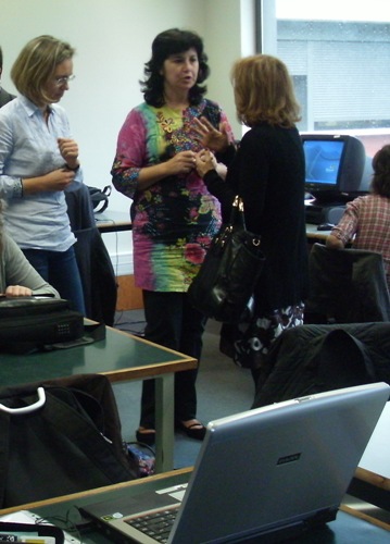 Momentos informais da formação Pordata/RBE, dia 8 de Outubro, na Escola Secundária Alberto Sampaio, em Braga, com a presença de alunos e professor bibliotecário daquela escola e de outras: ES Sá de Miranda (Braga); ES Maximino (Braga); ES/3 de Amares (Amares); ES/3 Alcaide de Faria (Barcelos); ES Caldas das Taipas (Caldas das Taipas); ES Martins Sarmento (Guimarães); ES Caldas de Vizela (Vizela).