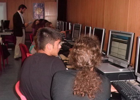 Alunos e professores bibliotecários das escolas ES Fernando Lopes Graça (Parede), ES Cascais, ES Quinta do Marquês (Oeiras) e ES José Saramago (Mafra) com o formador, Bernardo Gaivão, na sessão Pordata do dia 21 de Outubro, na Escola Secundária Fernando Lopes Graça.