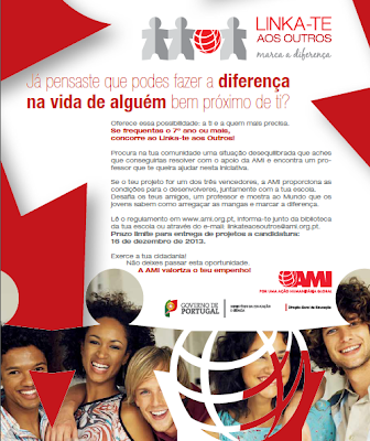 A Aminstia Internacional (AMI) lançou a 4ª edição do prémio Linka-te aos outros. Até 16 de dezembro, todos os jovens a frequentar a escola a partir do 7º ano podem apresentar à AMI propostas para resolução, através de atividades de voluntariado, de problemas locais. A AMI selecionará e financiará os três projetos mais consistentes, garantindo a sua viabilidade.
