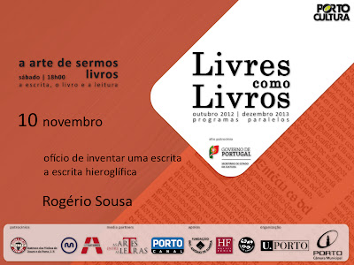 Qui | 08.11.12 "Livres como Livros" ou a arte de sermos livros Na Biblioteca Municipal Almeida Garrett (Porto). _____________________________________________________________________________________________________________________ Este trabalho está licenciado sob licença: CC BY-NC-SA 4.0 Tweetar Tags:difusão da informaçãoescritaleituralivros link comentar favorito