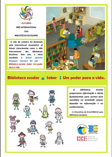 Qui | 27.10.11 Mês e dia internacional das bibliotecas escolares Mais cartazes alusivos ao dia/mês das bibliotecas escolares. _____________________________________________________________________________________________________________________ Este trabalho está licenciado sob licença: CC BY-NC-SA 4.0 Tweetar Tags:bibliotecas escolares link comentar favorito