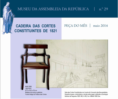 O Museu da Assembleia da República divulga, todos os meses, uma peça do seu património, acompanhada da respetiva descrição e de informações sobre o contexto histórico. A imagem reproduzida é do Boletim de maio, disponível aqui >>.