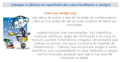 Ter | 22.12.09 Pavilhão do Conhecimento Uma sugestão para as últimas compras de Natal:Pavilhão do Conhecimento >> _____________________________________________________________________________________________________________________ Este trabalho está licenciado sob licença: CC BY-NC-SA 4.0 Tweetar Tags:difusão da informação link comentar favorito