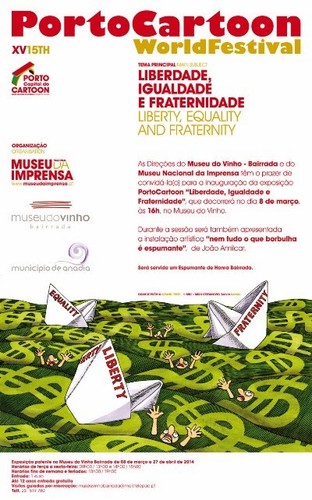 Se for ao Museu do Vinho Bairrada (Anadia) até 27 de abril, vai encontrar a exposição internacional PortoCartoon 2013: Liberdade, Igualdade e Fraternidade, resultado da primeira colaboração entre o Museu Nacional da Imprensa e a Câmara Municipal de Anadia. E também estará no local certo para descobrir que "nem tudo o que borbulha é espumante"!