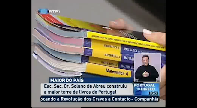 Uma torre de livros solidários, foi a iniciativa que assinalou, na Escola Secundária Dr. Solano de Abreu, em Abrantes, o Dia Mundial do Livro e dos Direitos de Autor. Alguns destes livros serão reutilizados e outros doados a instituições sociais. Mas a construção da torre de livros teve também um outro objetivo pedagógico, como refere a professora bibliotecária na reportagem do Portugal em Direto (minuto 29'36) - lembrar aos alunos que a importância do livro como fonte de pesquisa.
